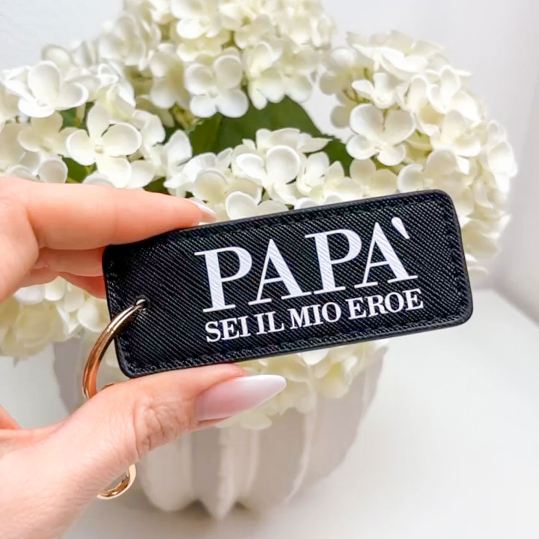 I prodotti personalizzati sono fatti per regalare un’emozione e per farsi ricordare. Questo portachiavi personalizzato per la Festa del Papà è un regalo utile e allo stesso tempo dolcissimo, che farà sciogliere anche il più duro dei papà.