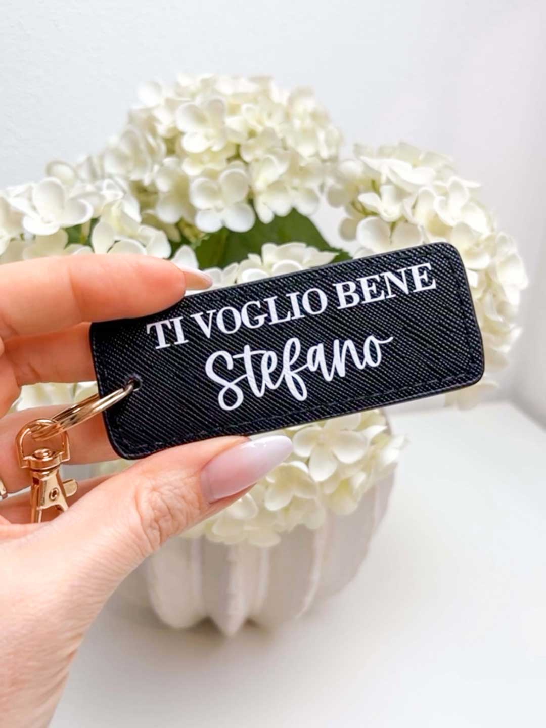 Elegante Portachiavi Personalizzato in ecopelle, personalizzabile con la frase che preferisci e il nome del bimbo.
